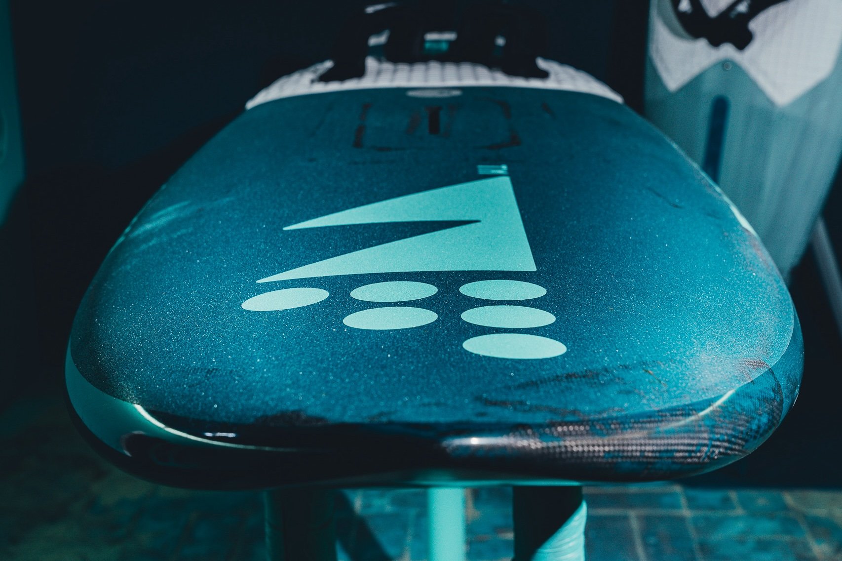 Durch die verwendung von Carbongewebe als Bodenlaminiat können wir, bei besonders großen Boards, zusätzlich Gewicht einsparen und die Gesamtsteifigkeit deines Boards erhöhen.